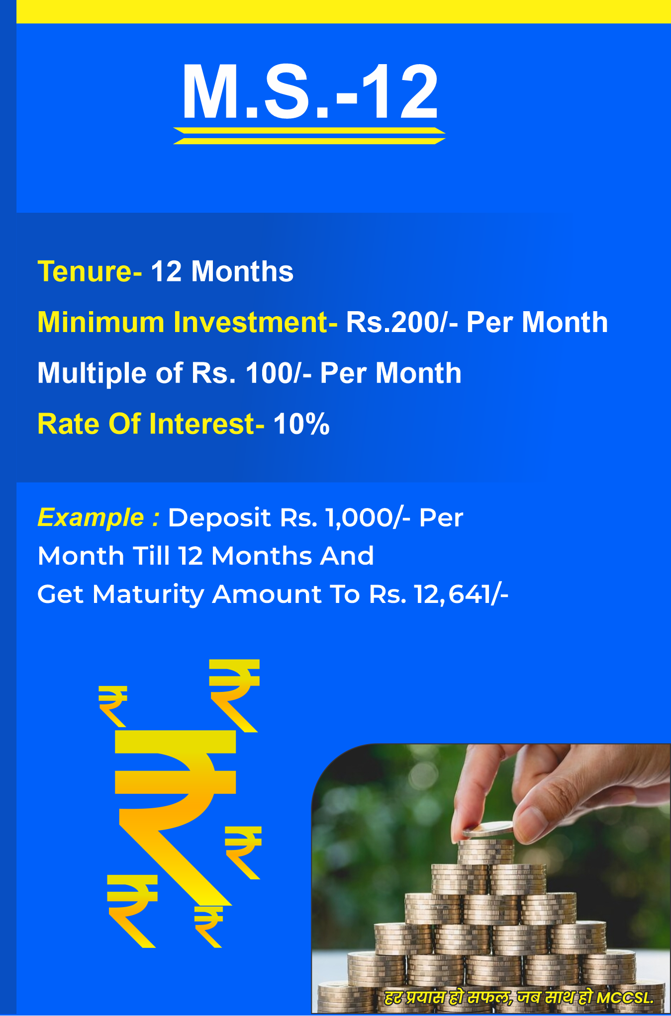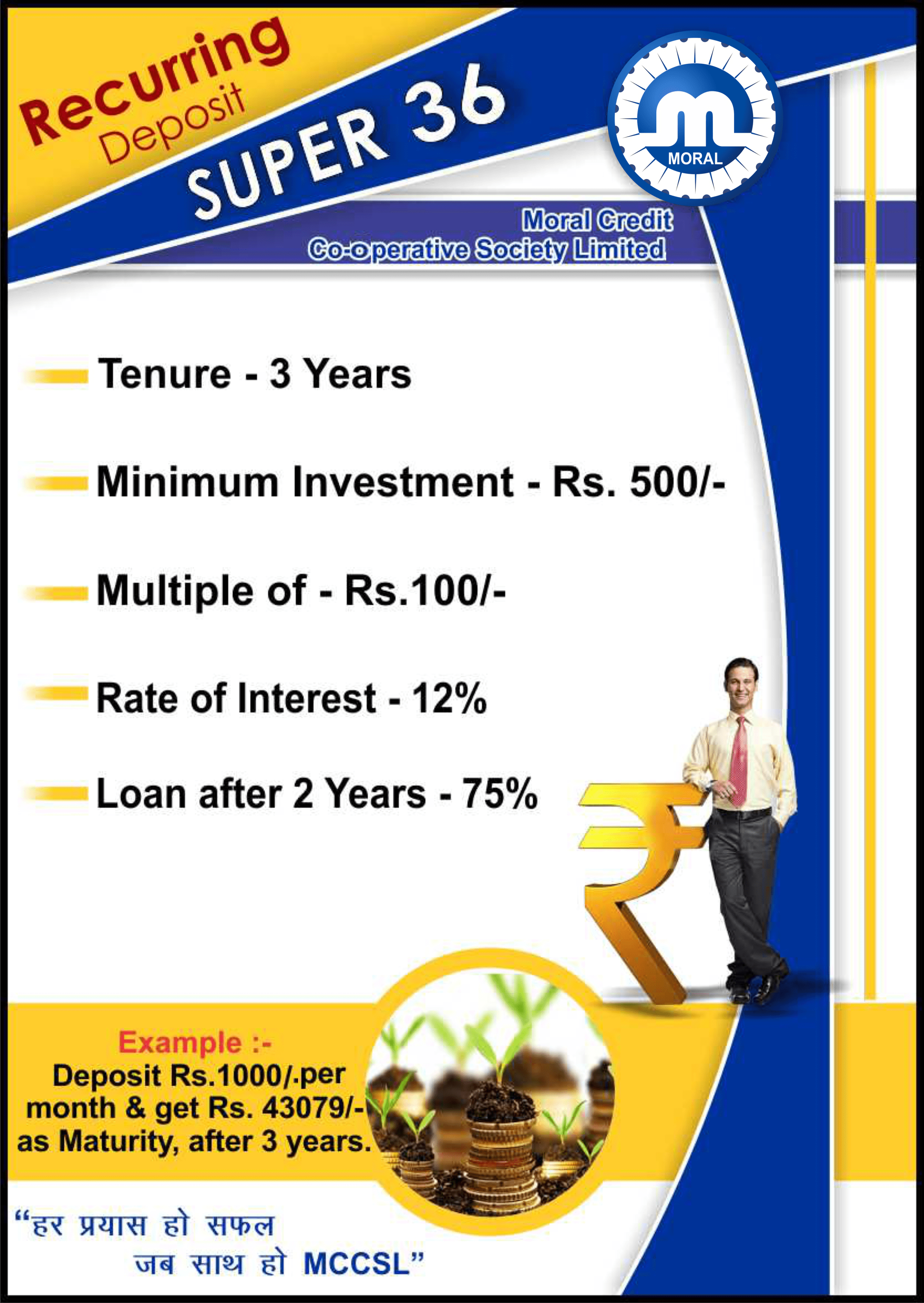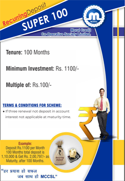 The minimum investment amount for this scheme is Rs.10, 000 or in multiples of 10,000. After maturity period total deposited amount will be given and Rs.3, 000 /pm will be given as pension for life-time.