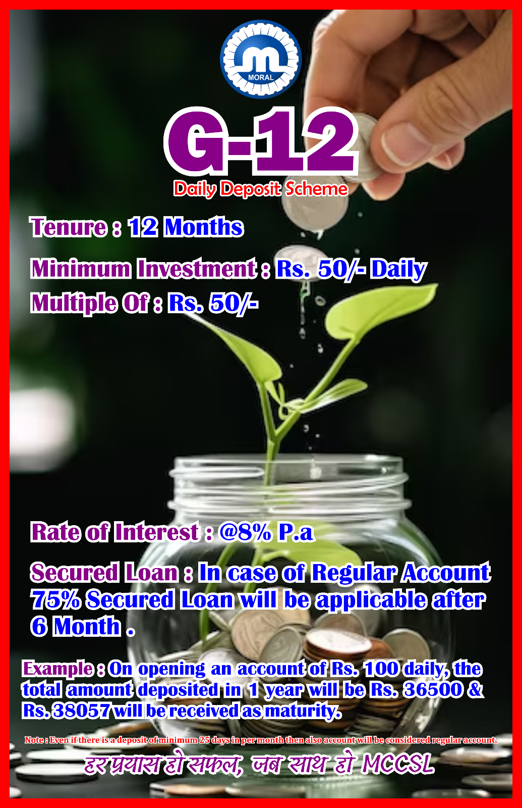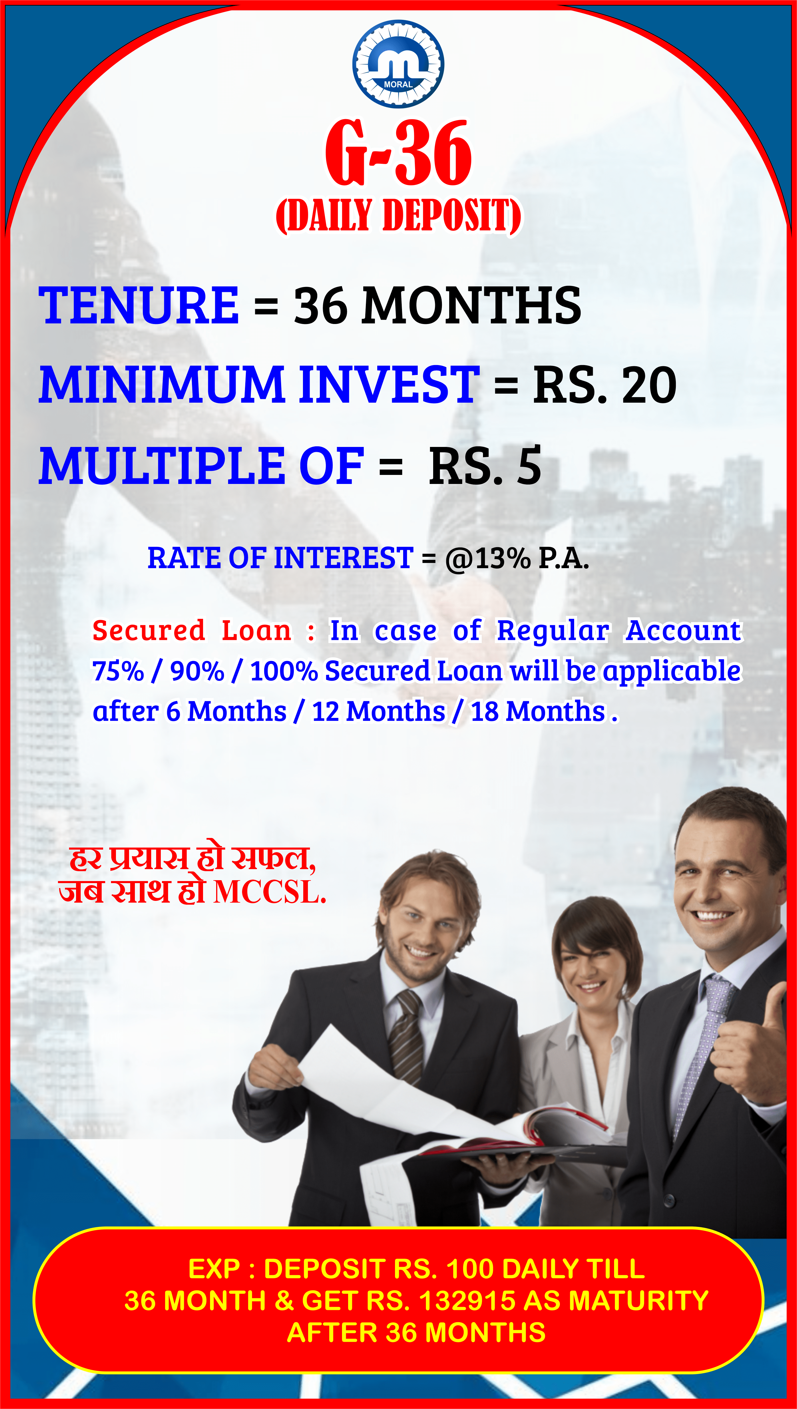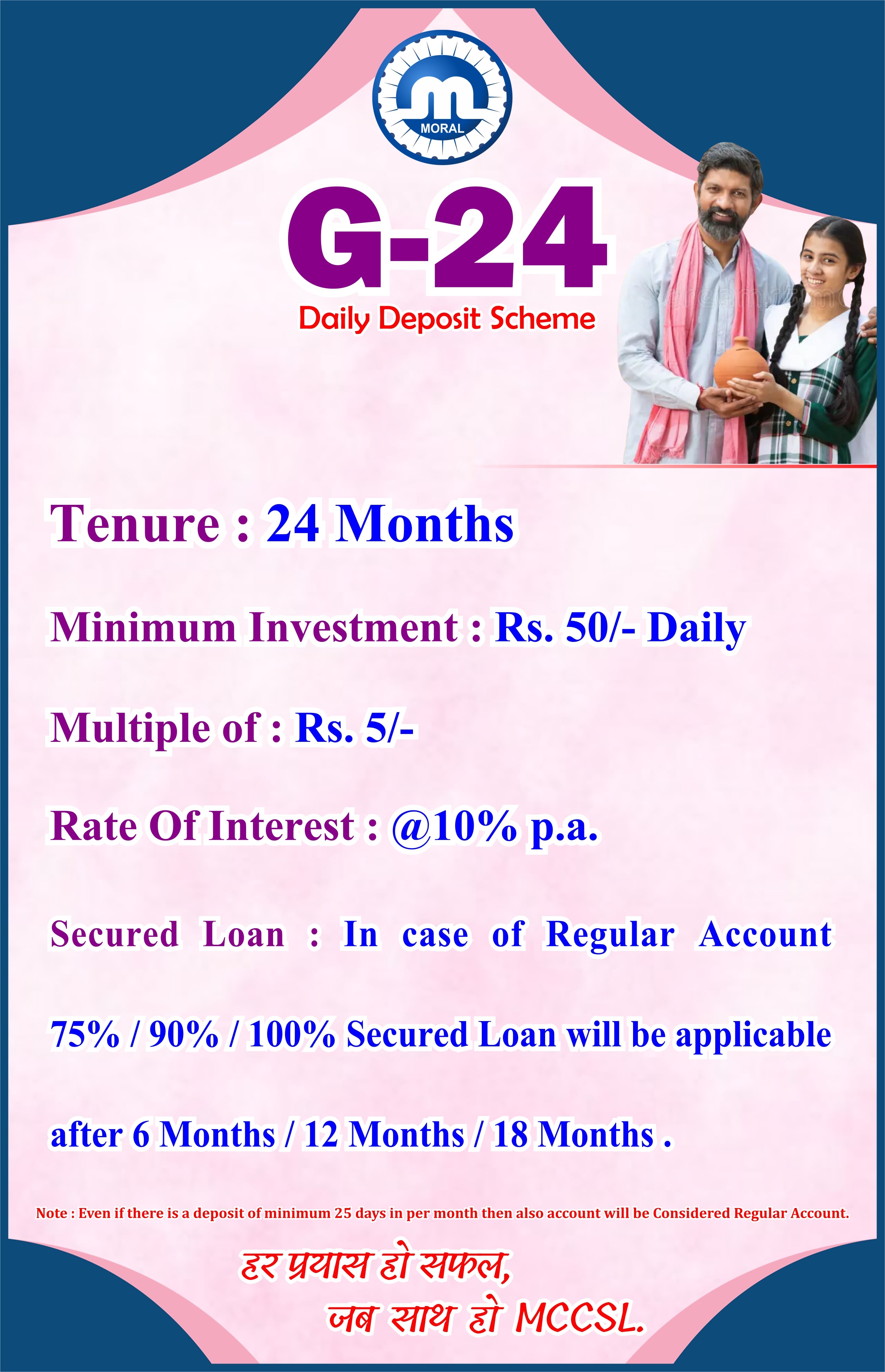 Daily Deposit Schemes (DD) are offered to the members so that they can make savings on daily basis. DD scheme allows members to regularly save money by investing a little portion of earning every day for a defined period of time.